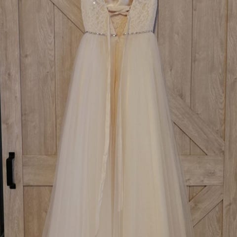 Zazabellasta ostettu vaaleanharmaa Dazzling-mekko. Koko 32 (normaalisti vaatekoko 34 tai xs) ja sopiva 160 cm pitkälle. Tanssittu 4 cm koroilla ja vannehameen kanssa. Mekossa on myös tyllikangas, joten vannehame ei ole pakollinen ja menee silloin pidemmällekin. Pukupussi sisältyy hintaan. Kissatalous. Kulkeutuu kerran kuukaudessa Jyväskylään.