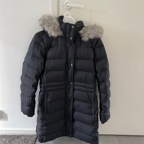 Musta reisipituinen naisten Tommy Hilfiger Tyra -untuvatakki erinomaisessa kunnossa. Hupun ja hupussa olevan karvareunuksen saa irti. Alkuperäinen hinta 300.