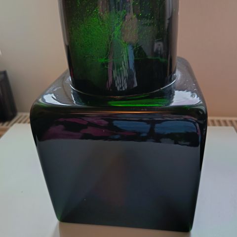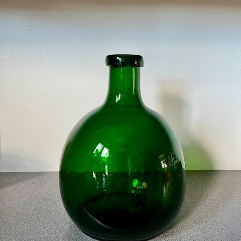 Vihreä Sargasso pullo, korkeus n. 24 cm. Sign, Nuutajärvi Notsjö.
