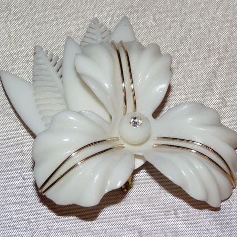 Harvinaisen hieno beige maalattu kukka solki puukoru. Koko noin 55 x 35 mm. Takana taiteilijan signeeraus. Hyväkuntoinen käsinmaalattu rintaneula.