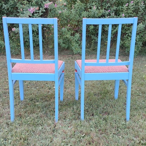 Myydään kuvassa näkyvät vanhat retro tuolit 2kpl. Toisen tuolin istuinosa irti vaatii liimauksen. Myydään yhteishintaan:30€/2kpl.