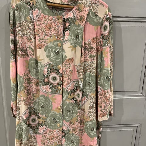 Vanha hihaton paita tai toppi, ehkä 1970-luvulta. Kokolappua ei ole. Kainalo-kainalo-mitta 42 cm. Pituus olkasaumasta helmaan 45 cm. Hiukan joustava kangas.