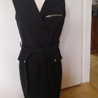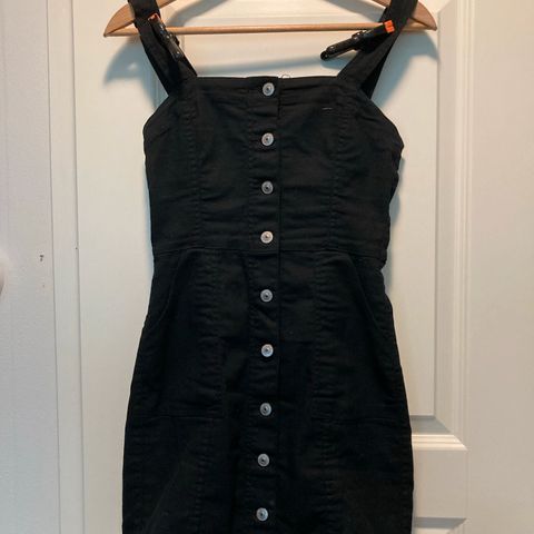 Musta minimekko, napitettava, oikeat taskut edessä. Koiratalous Mustalammella.