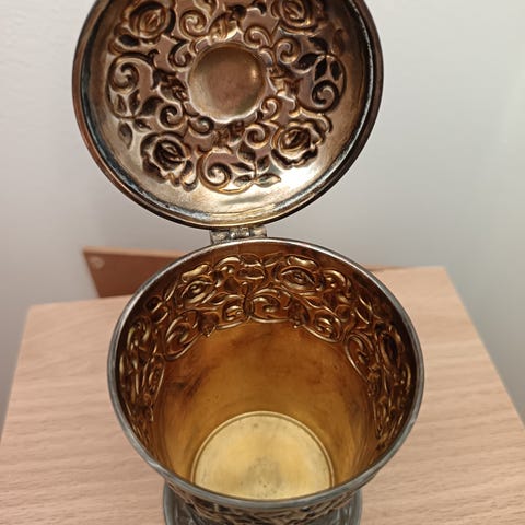 Vanha puinen tupakkarasia rulookannella kooltaan 8,5 x 10,5 x 4,5 cm.