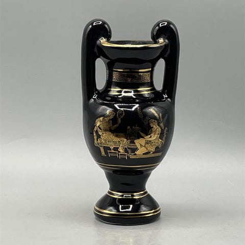 Kaksi kannellista rasiaa, joiden kansissa maalattu Antiikin Kreikan aiheisia kuvia. Kreikkalaista käsityötä. Käsinmaalattu kuviointi, koristeltu kultamaalilla. Virheettömiä. Uudet, ole olleet koskaan käytössä. Mitat: korkeus 5 cm, halkaisija 12 cm. Valmistusmateriaalina on korkealaatuinen keramiikka. Pohjassa on valmistajan leima: Adis. Postitus onnistuu.