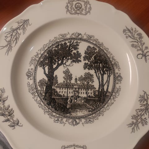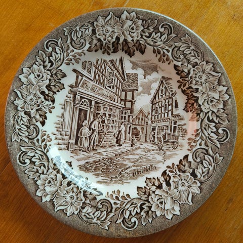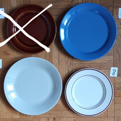 Todennäköisesti amerikkalaisen Indiana Glassin 1980-luvulla valmistamat lautaset.