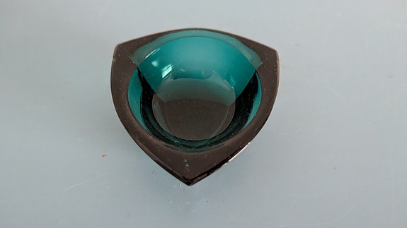 Ei iskeymiä, halkeamia tai edes naarmuja. Pohjassa hiukan likaa. Violettan tarra vielä paikallaan.