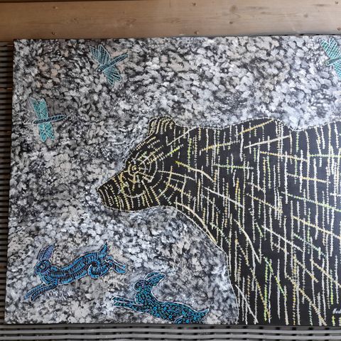 Altai wapiti, 71x61 kokoinen (cm) akryylimaalaus maalauspohjalle (puukiiloihin kiristetty kangas), ei ole kehystetty. Saa laitettua seinälle sellaisenaankin ilman kehyksiä.