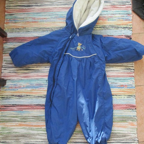 Kuvanmukainen Tutan talvihaalari kokoa 74. Kunto hyvä, paitsi kuminauhat lahkeissa mennyttä. Ne pitää vaihtaa.