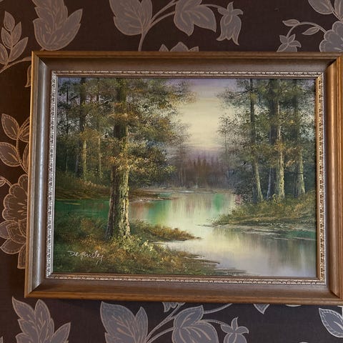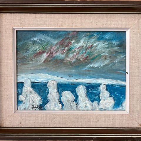 Kaunis talvimaisema, signeerattu T. Tiitta -79. Korkeus kehyksineen 35,5 cm, leveys 30cm.