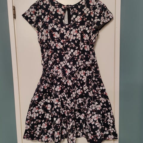 Joskus Miss Windy Shopista tilattu mekko kaunista punakukkaista puuvillasatiinia (sis. 3% elastaania).