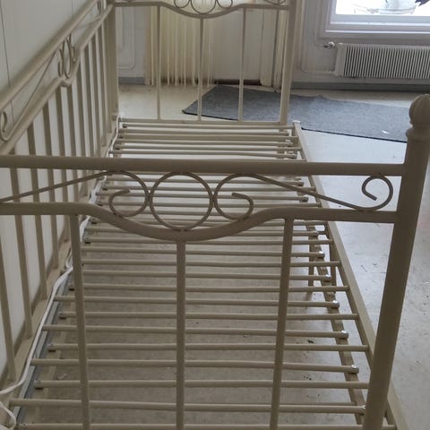 Auki taitettava vuodesohva, patjat, päälinen ja kaksi tyynyä.