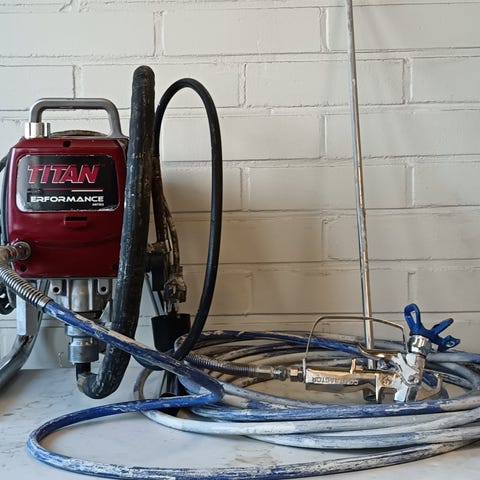 Mukaan maalaus kahva varrella(kääntyvä suutin)ja noin 50metriä letkua(näkyy kuvissa)