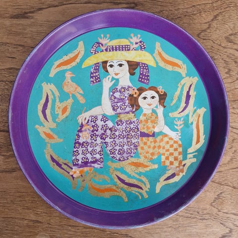 Erinomaisessa kunnossa Victoria Disaing tarjoitin, vanha, turkoosi, korkeus 11cm, ym, 27cm.