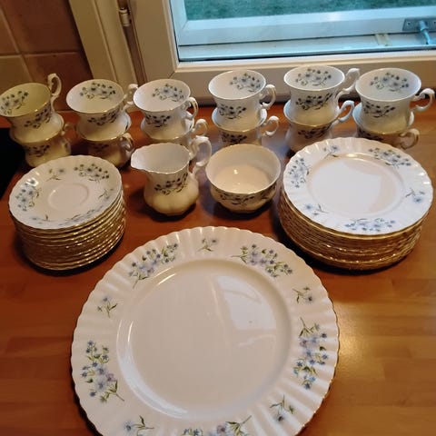 Sisältää kahvikannun kansineen, sokerikon kannella sekä sokerikon plus 12 kuppia ja 11 asettia.