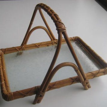 Rottinkinen tarjoiluvati 1960-luvulta, mummolan esineitä.
