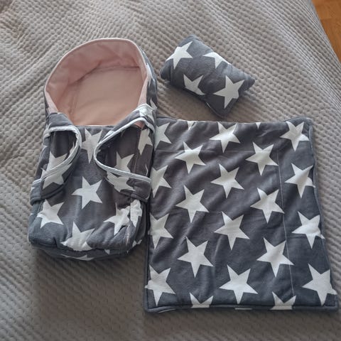 Vihreä väriltään, päällyspuolella kahdet vetoketjut, kantonauhat, siisti.
