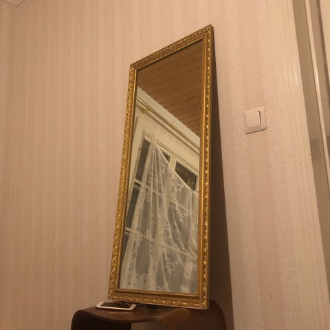 PAINAVA ja tukeva ns. käsipeili, jossa peili molemmilla puolilla- 70- luvulta- kunto ok, pit.38 cm ja levein kohta 18 cm, paksuus n.8 mm.