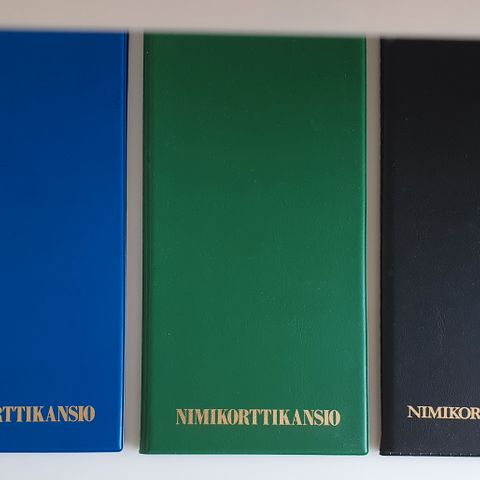 3 kpl käyntikorttikansioita 1 kpl C-kasettisalkkua