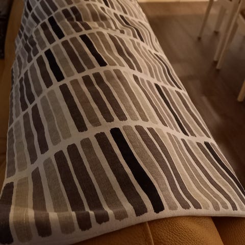 Laadukkaasta kankaasta tehty, rypytys mahdollisuus ommeltu verhoon, siitä kuva myös.