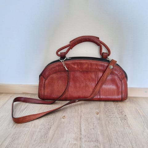 Myydään käyttämätön Vintage nahkalaukku. 21 cm x 22 cm, pohja 4 cm ja olkainta voi säätää. Kaksi vetoketjutaskua, Yksi niistä keskellä isompi sekä vetoketju kiinnitys. Laukussa vuori.