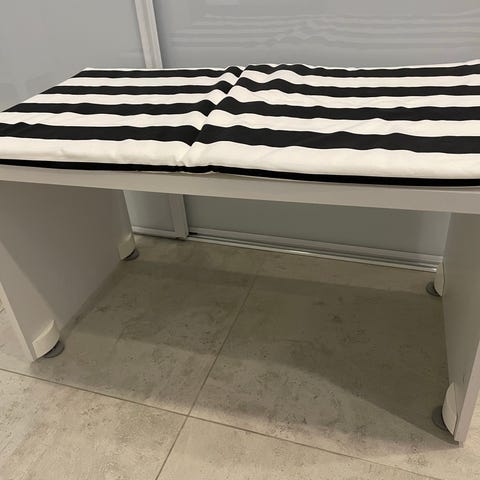 Tarroilla tuunattu Ikean Lack-pöytä herkullisen mintunvihreänä, kulumaa on.