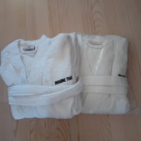 Käytetty kylpytakki. Ei tuote/ kokolappua. pölyinen naulakossa roikkumisen vuoksi. Jotain langanvetoa voi olla. Yleisilme siisti. Sisäpuoli froteeta. Päällinen lyhyempää samettipintaisempaa. Soveltuu pienellä tuunauksella jopa joulupukin takiksi. Mmm.