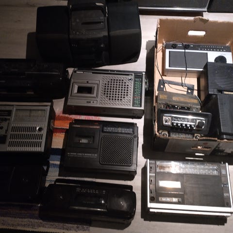 Vanhat mutta hyvin palvelleet kotistereot kaiuttimilla.