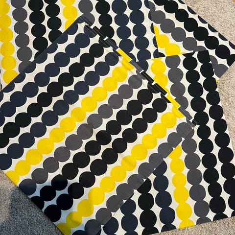 Kolme Marimekon tehdasvalmisteista vetoketjulla varustettua tyynynpäällistä, kukin noin 50cm*50cm. Käytetyt, mutta kirkasvärinen ja siistit. 15 eur kpl tai kaikki kolme yhteensä 40 eur.