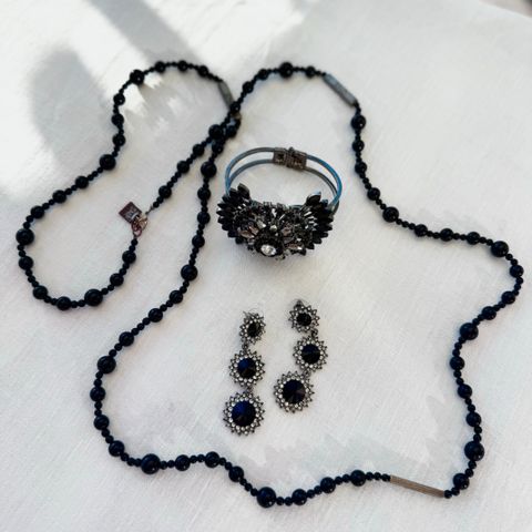 Kaksi kaulakorua ja kolme rannekorua, mm. Snö of Sweden.