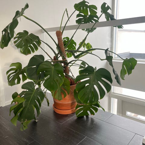 Valtavanlehtinen peikonlehti. Useita yli 60 reikäisiä ja 50 reikäisiä lehtiä. Korkeutta 1.5m ja leveyttä liinoilla supistettu. Elhon 30cm/14 litran ruukku+ aluslautanen kuuluu mukaan. Toimitus vain nouto tai tuonti bensarahan hinnalla.