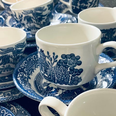 Kaikki teekupit ja aluslautaset yhdessä 30 euroa. MYYTY