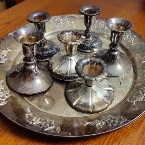 2 alpakka kynttilänjalkaa