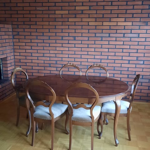 Kestävä puinen, jatkettava, nätti Laitalan talonpoikaisrokokoo ruokapöytä.
