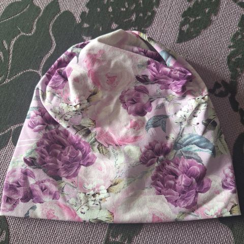 Myytävänä uusi tummansini-valkoraidallinen trikoopipo. Pipon trikoo on kaksinkertainen ja materiaali on 97% puuvilla ja 3% spandex.