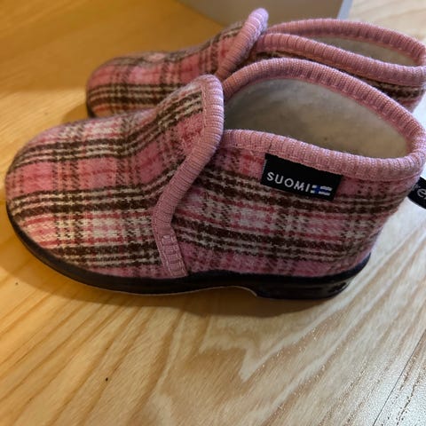 Lasten Reinot erikoisprintillä: Haukikoiran haukiprintti. Koko 22. Hienot tossut kalastuksesta tai kaloista kiinnostuneille.