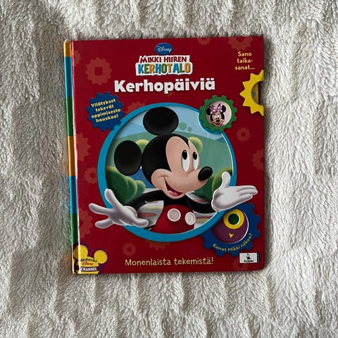 Kerhotalossa tapahtuu niminen kirja Mikki Hiiren kerhotalo -lastenkirjasarjasta. Erittäin siisti sisältä ja ulkoa. Kiva kirja, jossa kaksi tarinaa.