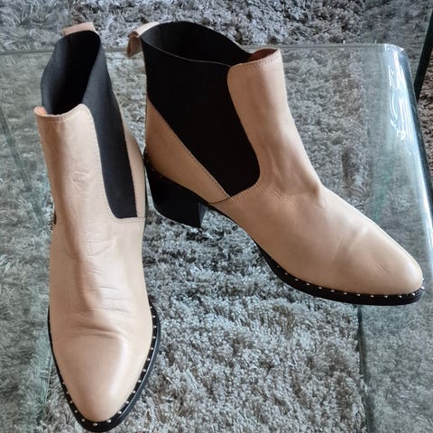 Your Fashionable IDENTITY, käyttämättömät täysin uudenveroiset tosi tyylikkäät mustat nahkaiset nilkkapituiset karvavuoratut bootsit kokoa 39. Pohjan sisämitta 25,5 cm.