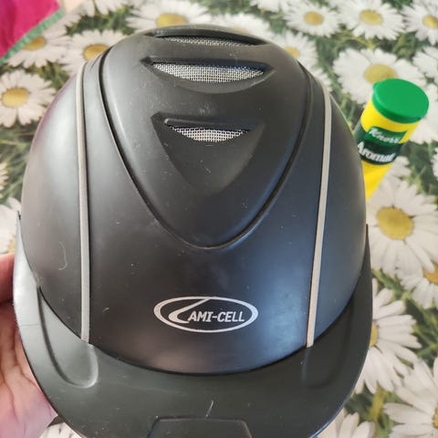 Myynnissä ruskea samettikypärä, käytetty mutta ehjä, koko 56, hinta 10 euroa + postikulut