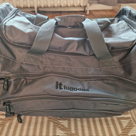 Vahvaa kangasta, 2x pyörät, sininen, 2x sivutaskut, vetokahva, vetoketjusuljenta