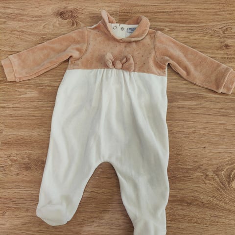Babyboom lyhythihainen body olkaneppareilla otsikon mukaisesti hintaan 0,30 euroa. Bodysta puuttuu materiaali- ja kokolappu, mutta arvioisin kooksi 62 ja materiaaliksi puuvillan.
