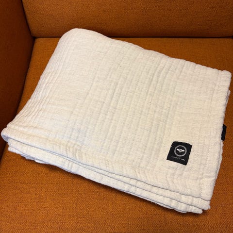 Siisti lukuunottamatta reunaosaan tiputtamaani pieni valkoinen maali läikkää (näkyy kuvassa). Laadukas miellyttävän tuntuinen ja näköinen päiväpeite. Ei topattu. Valkoinen. Koko n. 230x140cm. Eläimetön talous. Juuri pesty.