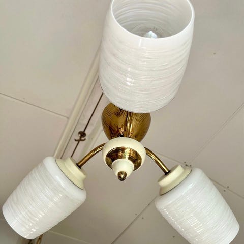 Hyvä kuntoinen chandelier kattovalaisin. Siitä tulee kirkas valo ja värikkäitä valoja. Myydään 50€, käteisenä.