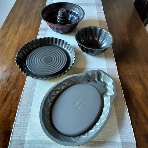 Pienehkö piirakkavuoka, paksu, jotain tummentumia, halkaisija 22cm ja korkeus 3,5cm. Ei pesty astianpesukoneessa.