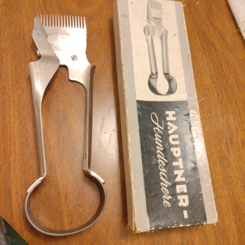 Sekatavara & Rautakauppatavaraa/rautaisia työkaluja, tyhjät ja käytetyt metsästysjäsenkirjat 1930-40-luvuilta, lampaanhoito opas, metsurin-kynä- ja -värikynät merkkaukseen, vanha naulapaketti yms., tuotteet 1920-1980-luvuilta;