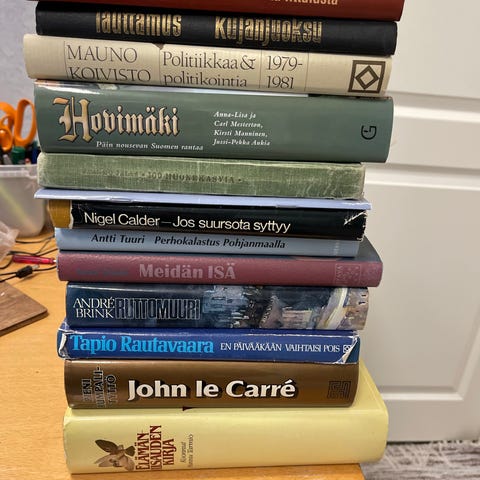 Kuvanmukaiset hyvässä kunnossa olevat kirjat KARISTON NUORTEN KIRJASTON kirjojen ystäville n. 50 vuoden takaa.