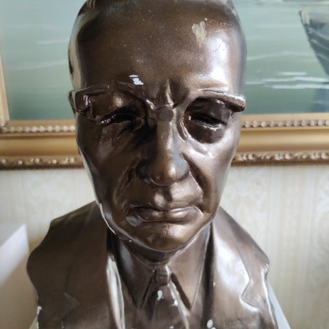 Etupuolella teksti J.K.Paasikivi. Takana signeeraus Essi Renvall 1950. Pohjassa tarra Tuki Invaliidisäätiön Työlle.