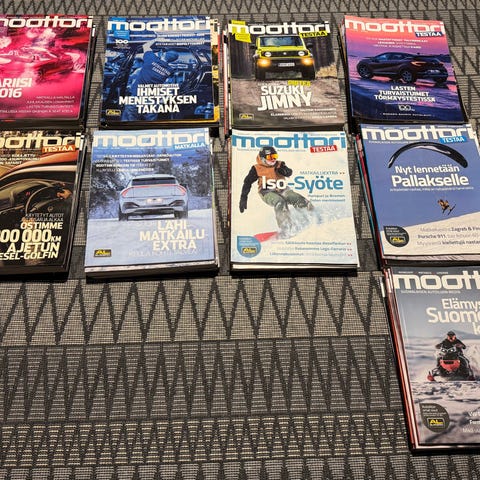 Moottoripyörä ja museoauto sekä autoharrastajan lehdet
