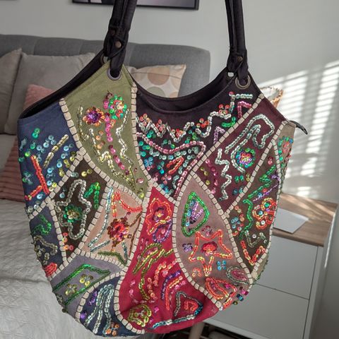 väri on oranssi,materiaali punottua narua,siisti puuvillavuori,sisällä vetoketjutasku,kantokahvat nahkaa,edessä 3 kangaskukkaa.Hajusteeton koti ei lemmikkieläimiä.