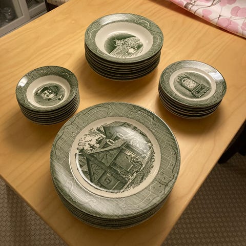 Viisi todella kaunista koristeellista, reikäkuvioitua lautasta. Yhdessä lautasessa leima Tehdas Lampinen Finland, toisessa import-leima ja muissa ei leimoja. Yhteishinta 20e/5 lautasta.